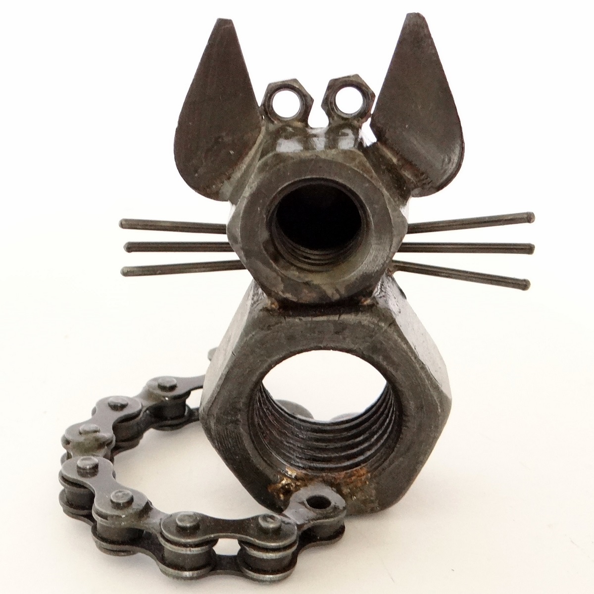 Introducing our cute mouse ornament, ingeniously crafted by fair trade artisans in India using recycled bicycle parts and bolts. These delightful creatures showcase the perfect blend of fun artistry and recycling. Each purchase supports artisans’ livelihoods and promotes eco-conscious practices.