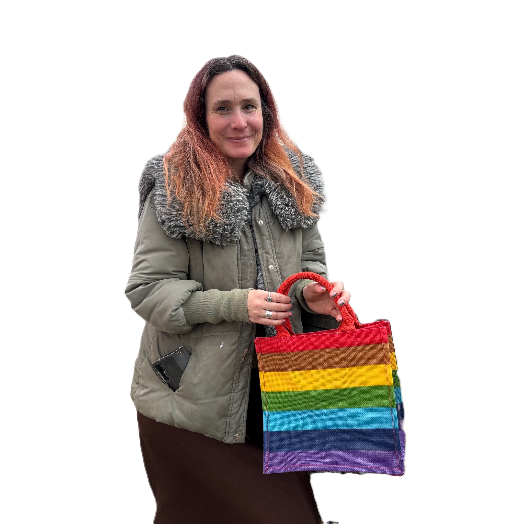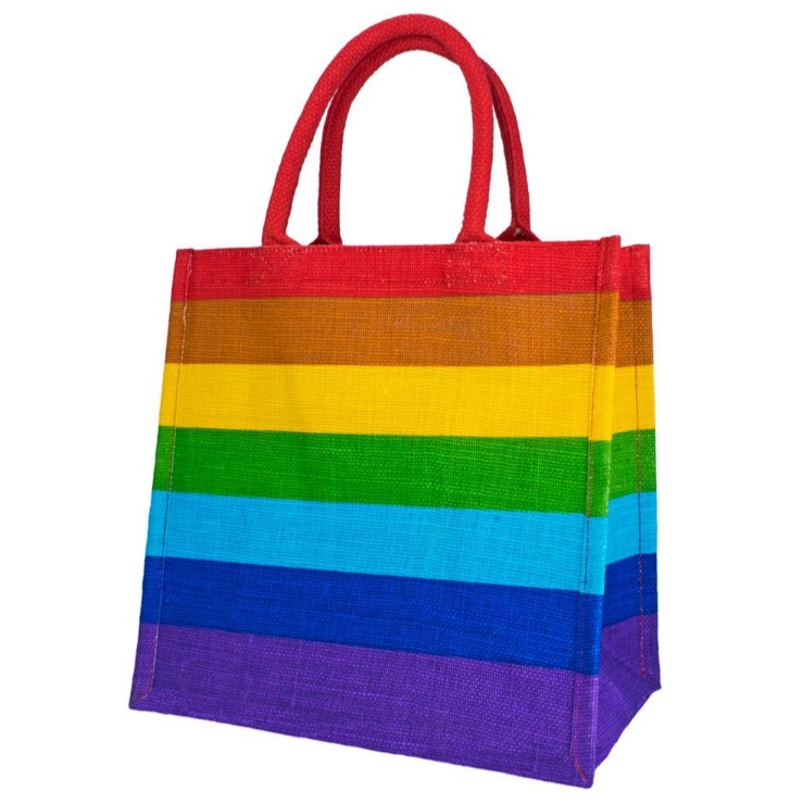 This Rainbow shopping jute bag is 100% biodegradable, recyclable and needs no pesticides. It is the second most important vegetable fibre after cotton and is a light, soft, shiny plant fibre that can be spun into coarse, which has a very strong threads making the bag very durable. The fibre is produced from the mallow family Malvaceae.