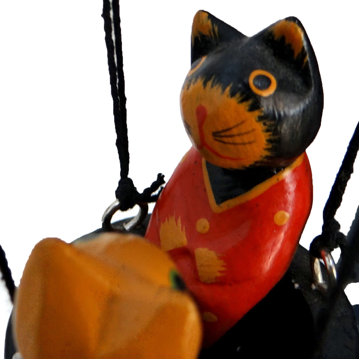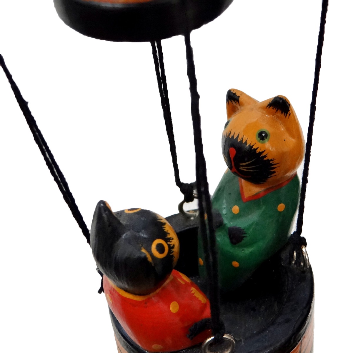 Two cats in a hot air balloon model a lovely cat themed gift. Hanging wooden ornament from a metal hook, all hand crafted from Albesia Wood.